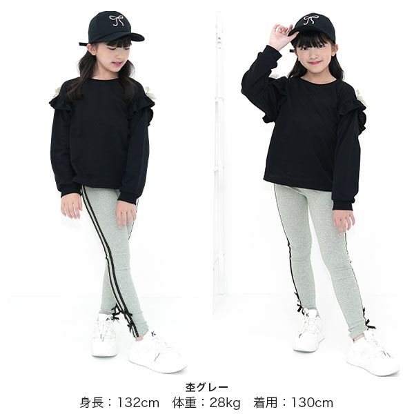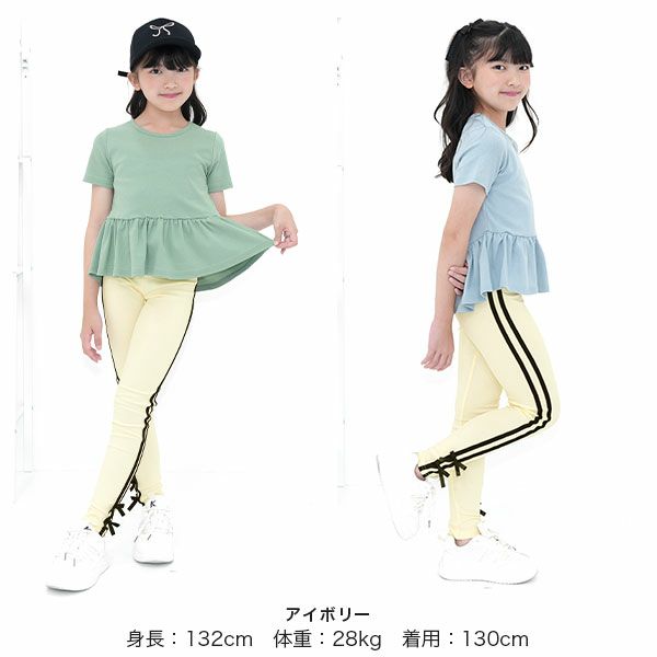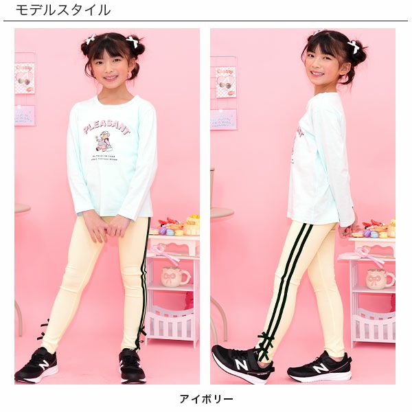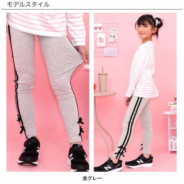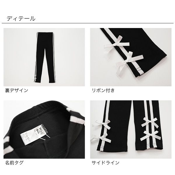 リボン付きサイドレギンス新登場。毎日の通園通学にもオススメで伸縮性があり着心地抜群なのでたくさん動くお子様にぴったり。トレンドライクな可愛さ、着心地にこだわった1枚です。 リボン付きラインレギンス