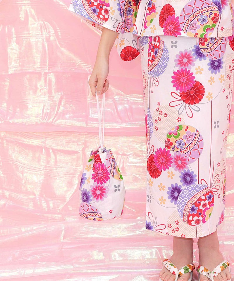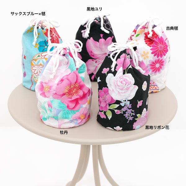 浴衣着用時に困るバッグ問題を解決、お客様の声から誕生した待望アイテム。着付け簡単浴衣と同柄でセットで着用できる巾着バッグ。 巾着バッグ
