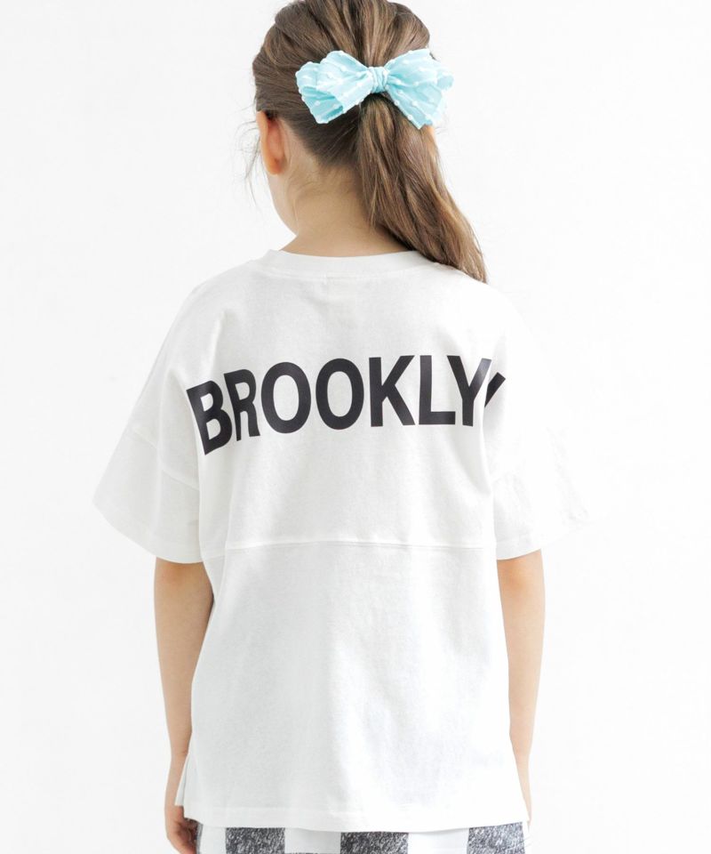 バックロゴ入りのオーバーサイズTシャツ。通園通学にピッタリなプチプラアイテム。ぱっと目を惹くかっこいいロゴがポイント。兄弟姉妹でのお揃いコーデにもおすすめ。ママも着られる160cmまで展開中です。 バックロゴトップス