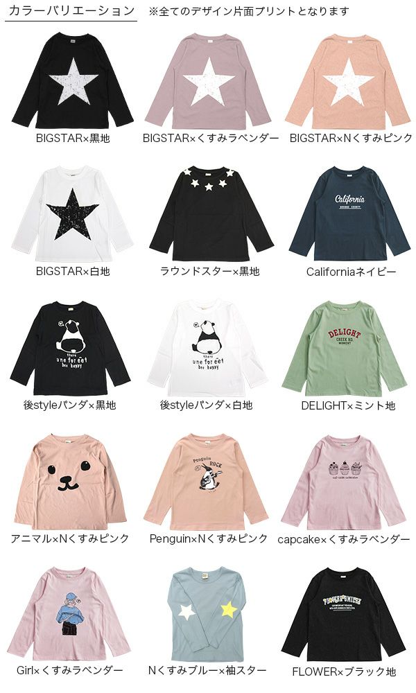綿100%で着心地も良く、豊富なカラバリ展開のプリントTシャツ。毎日着たくなるシンプルから可愛い絵柄まで多数。プチプラなので通園通学のデイリー使いにおすすめです。 プリントTシャツ