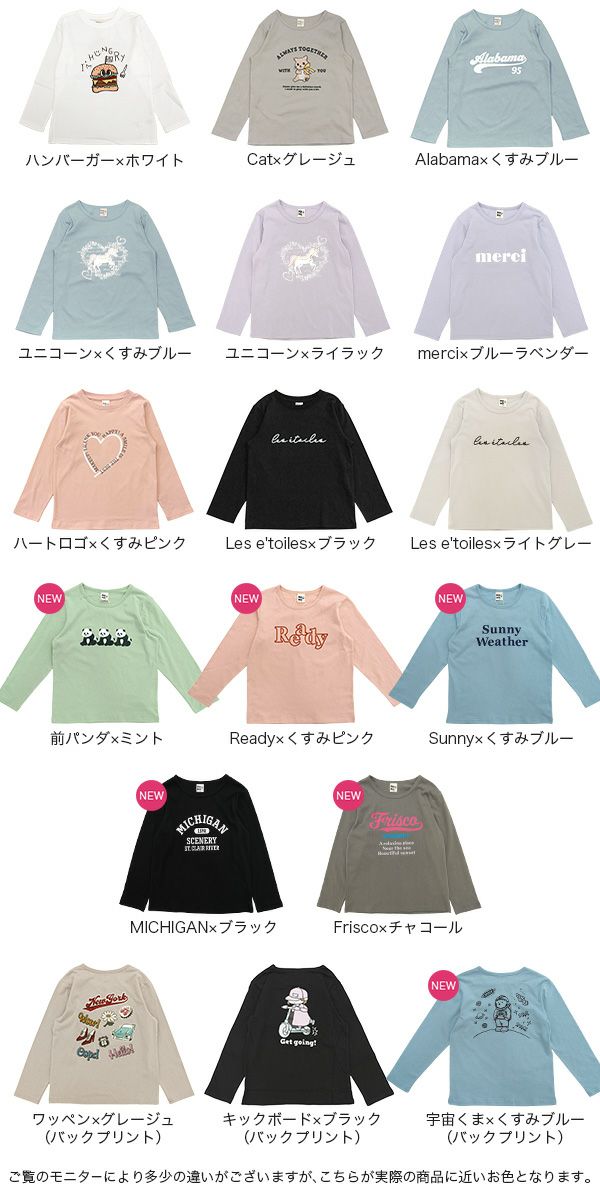 綿100%で着心地も良く、豊富なカラバリ展開のプリントTシャツ。バレエコアなトレンド感のある絵柄が多数。プチプラなので通園通学のデイリー使いにおすすめです。 プリントTシャツ