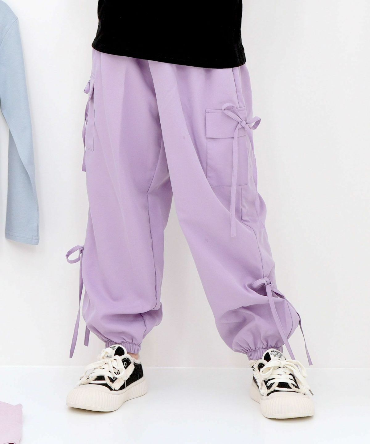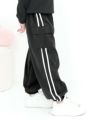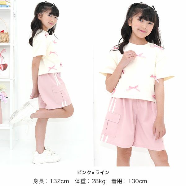 男女兼用のライン入りカーゴパンツからリボン付きのデザインまで展開中。オールシーズン着用でき、160cmはママも着用可能です。ウエストゴムで脱着も楽ちんで通学にもおすすめです。 カーゴパンツ・ジョガーパンツ