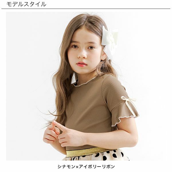 袖リボントップス